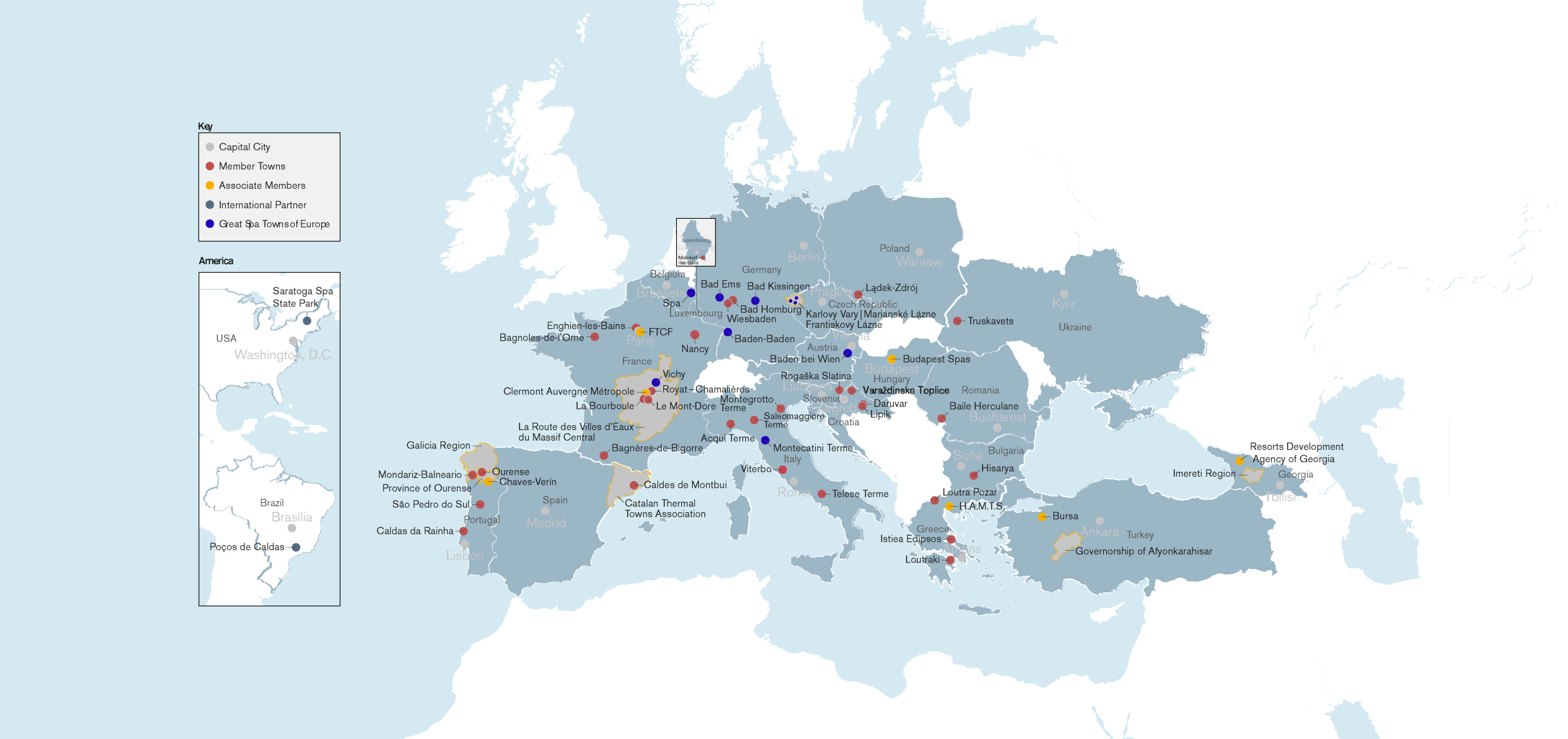We celebrate towns and territories which all have a rich historical and cultural heritage and use their thermal mineral waters for health and well-being.